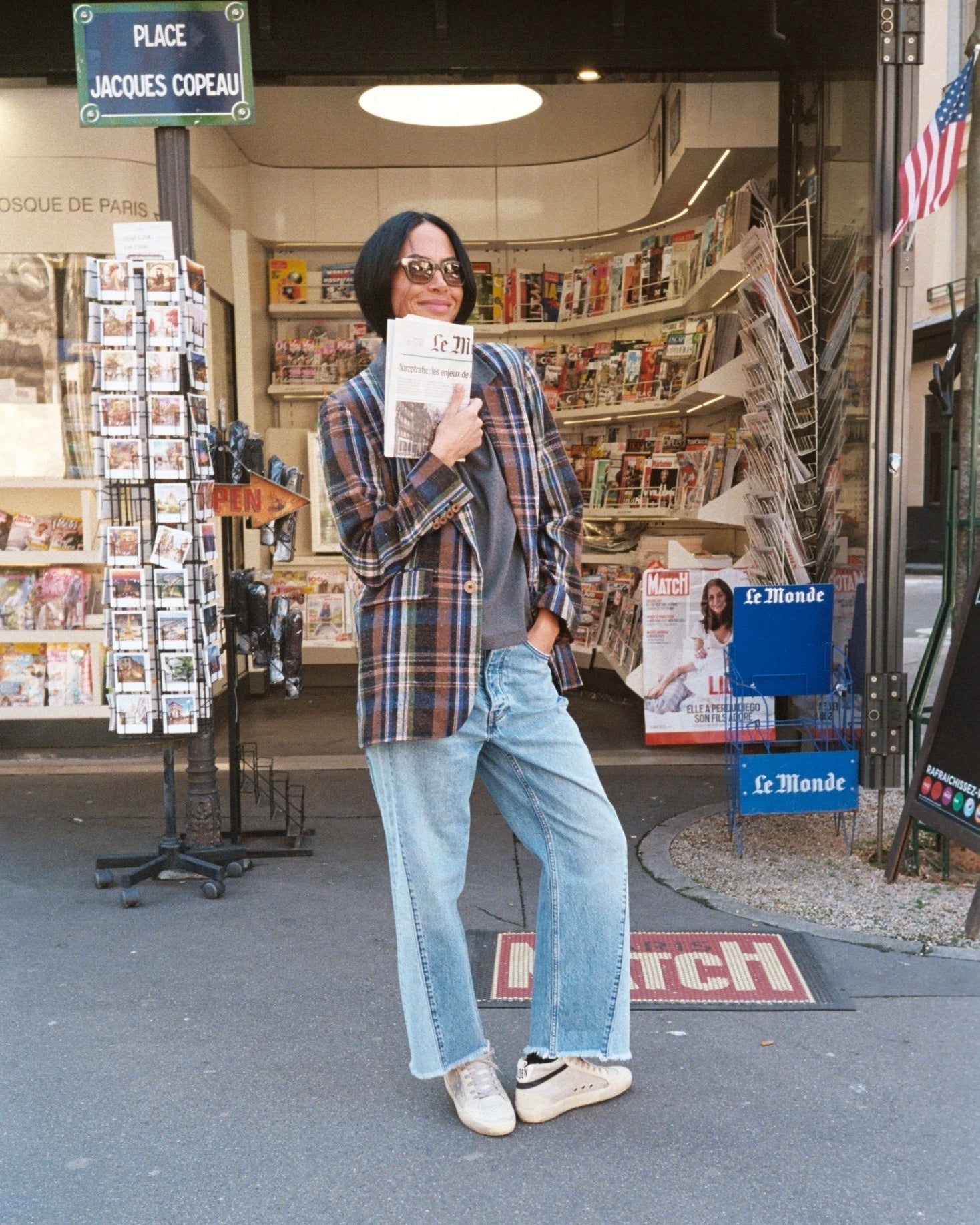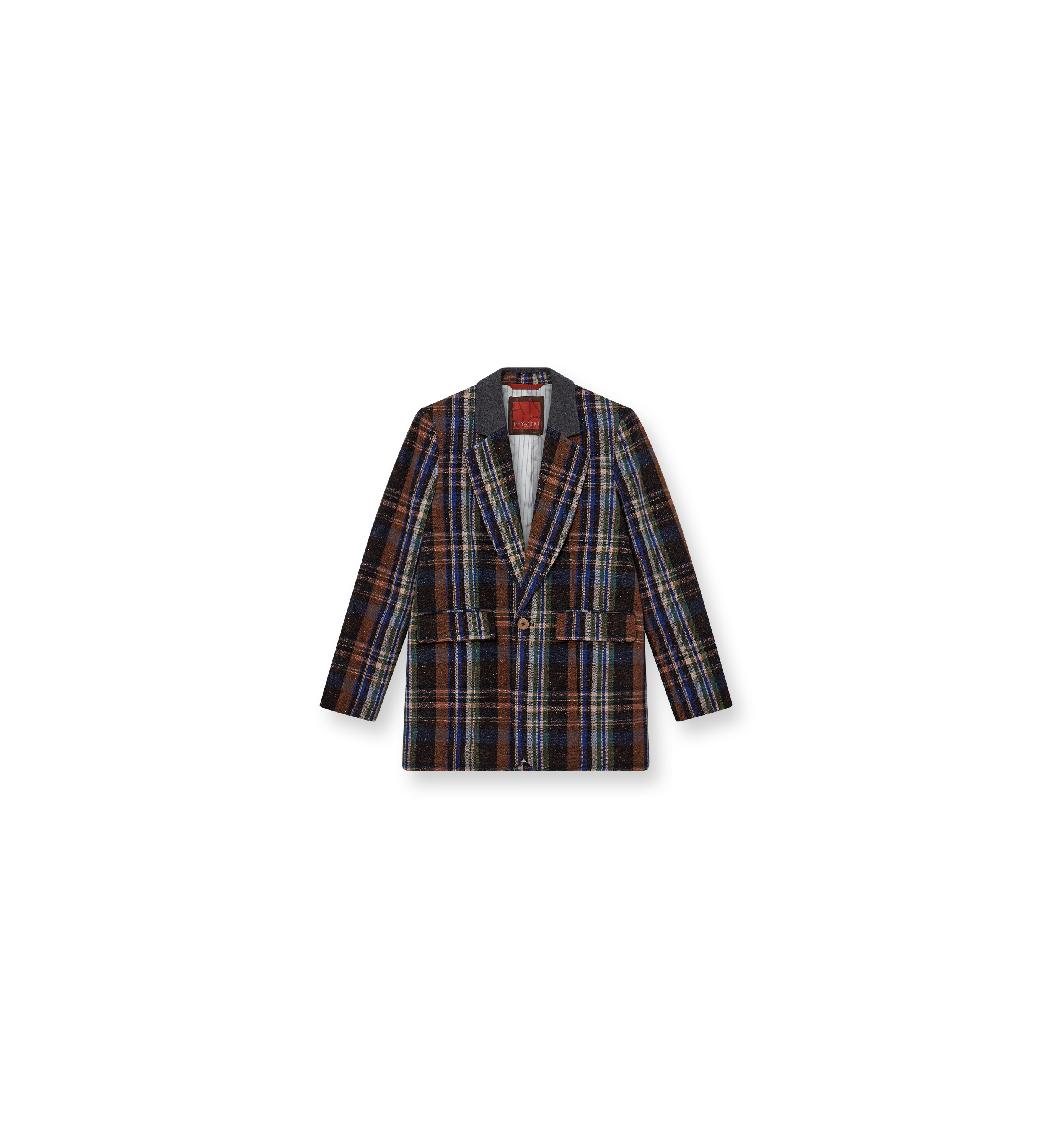 Enkeltknappet blazer med et stort rutemønster i italiensk stoff. Lang, avslappet passform med klassiske detaljer som klaffelommer og mansjetter med knapper. Enkel å style med både dressbukser eller jeans for et dristig utseende.