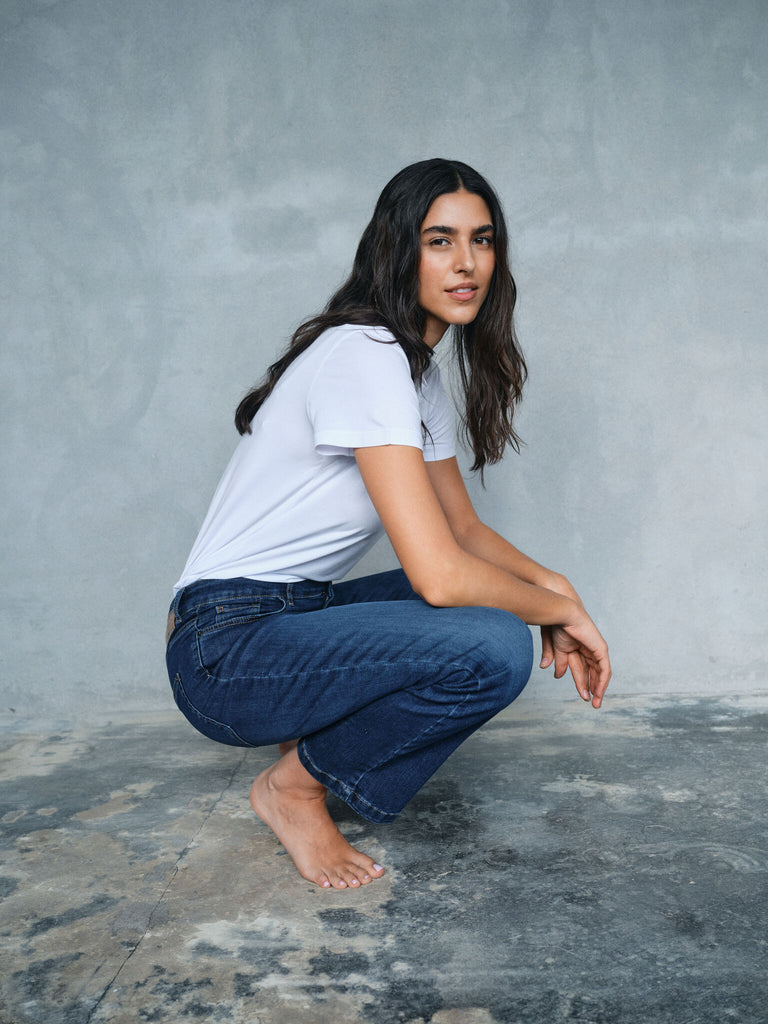 Vi vet at det kan være litt av en utfordring å finne det perfekte paret med jeans som passer akkurat. Derfor har vi laget denne lille jeansguiden for å hjelpe deg med å navigere i våre forskjellige stiler, slik at du kan finne den perfekte matchen for din kroppstype og personlige stil. Enten du leter etter skinny jeans, boyfriend jeans eller noe imellom, er du sikker på å finne de perfekte jeansene i kolleksjonen vår.