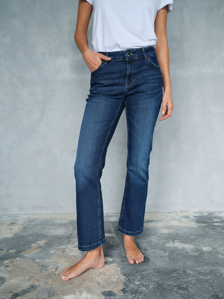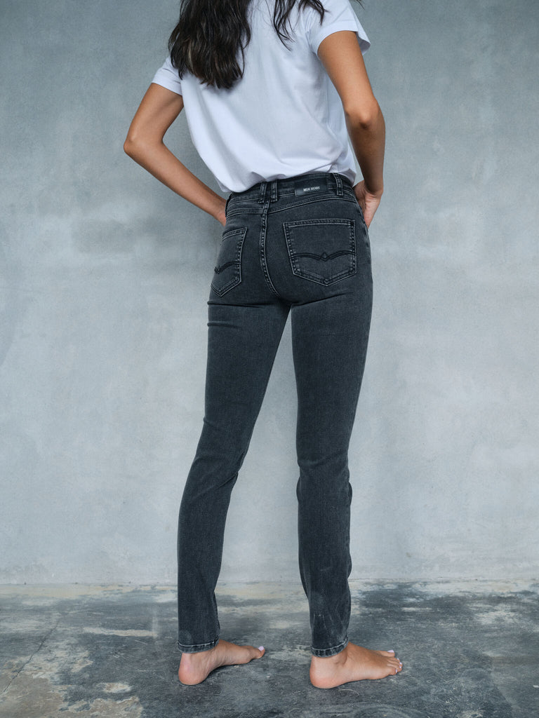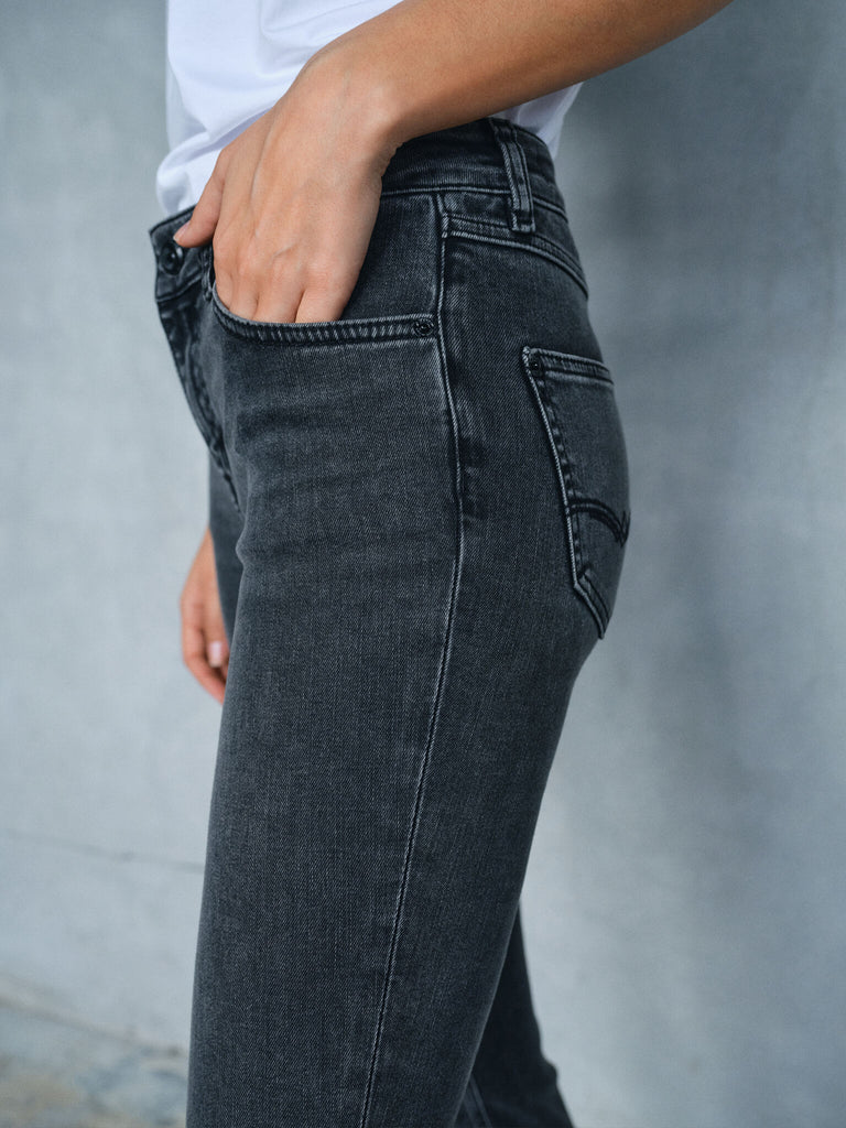 Slim fit-jeans er designet for å omfavne og fremheve kurvene dine med en tettsittende silhuett. De omfavner kroppen uten å føles ukomfortable, noe som gjør dem til et ideelt valg hvis du vil kombinere komfort med stil. Våre slim fit-jeans finnes i forskjellige midjehøyder – fra høy midje, som gir ekstra støtte og skaper en lang, elegant silhuett, til lav midje for et mer avslappet, moderne utseende, og mellomhøy midje, et klassisk alternativ som passer alle kroppstyper.
