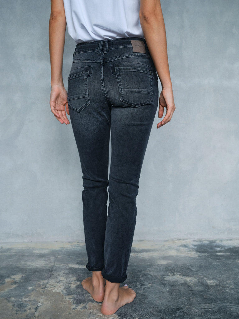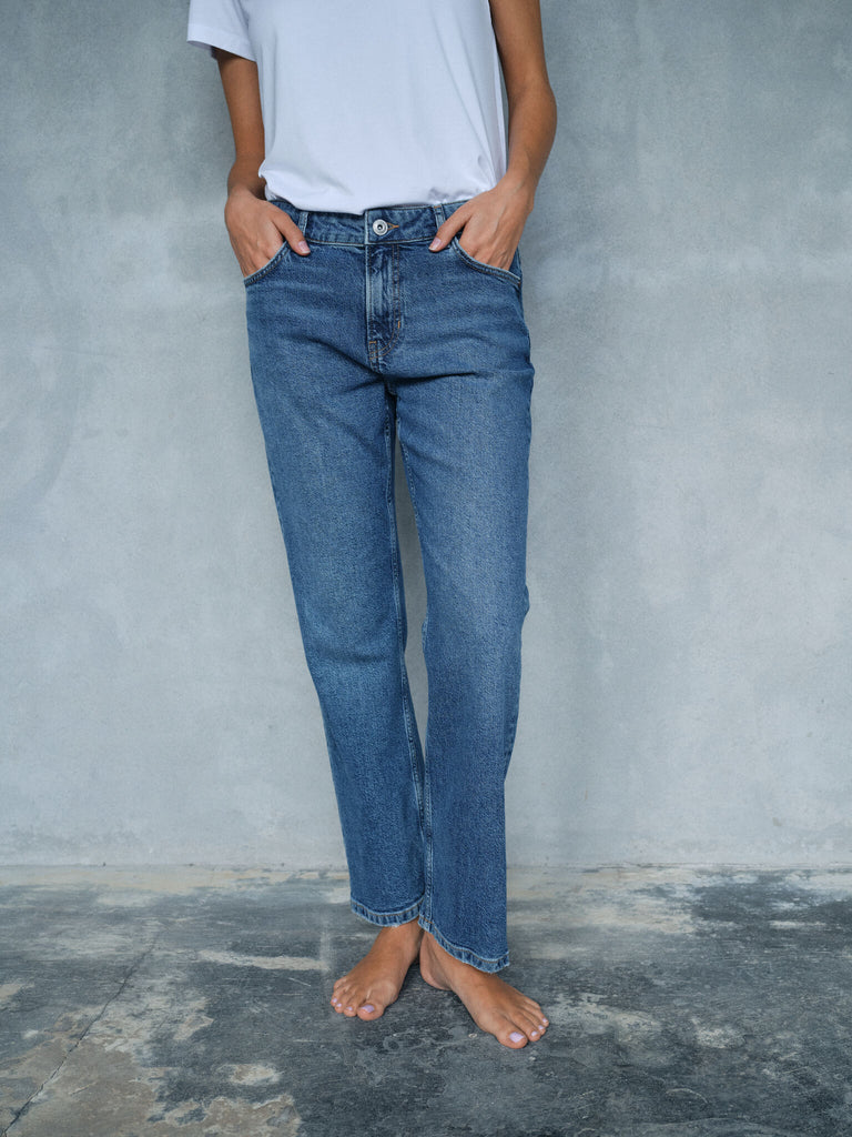 Boyfriend-jeans har en lett, løs og avslappet passform med en middels høy midje, noe som gir deg et uanstrengt utseende. Den avslappede stilen lar deg justere måten de sitter i midjen på, noe som gjør dem allsidige og perfekte for alle typer antrekk. Denne passformen har et mer maskulint uttrykk og gir en avslappet følelse.