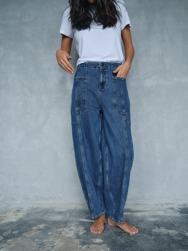 Barrel-jeans er inspirert av de ikoniske 90-tallet og har en avslappet ballongpassform og en trendy høy midje. De høylivede barrel-jeansene fremhever midjen på en elegant måte, mens den løse passformen rundt hofter og lår gir både komfort og bevegelsesfrihet. Barrel-jeansen passer til ulike kroppstyper og gir en komfortabel passform uten å være stramme rundt lårene.