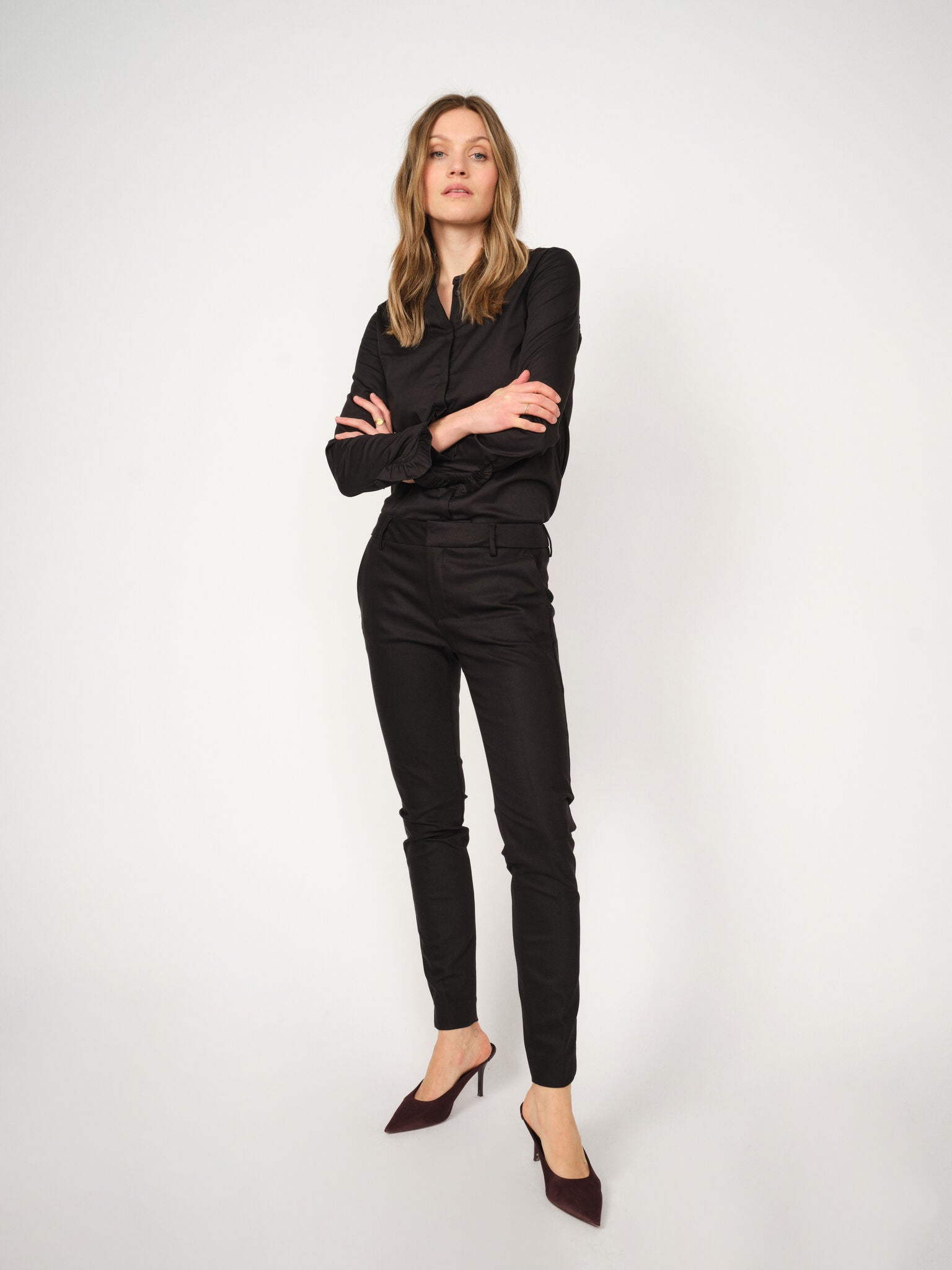 Et klassisk par dressbukser du alltid kan stole på. Buksene har en regular fit og middels høy midje, laget i et putemykt stoff med rikelig stretch som gjør dem behagelige å bruke hele dagen. Et perfekt valg til møter og like fine når dagen går over i kveldens arrangementer. Kombiner dem med den matchende blazeren for et komplett uttrykk.