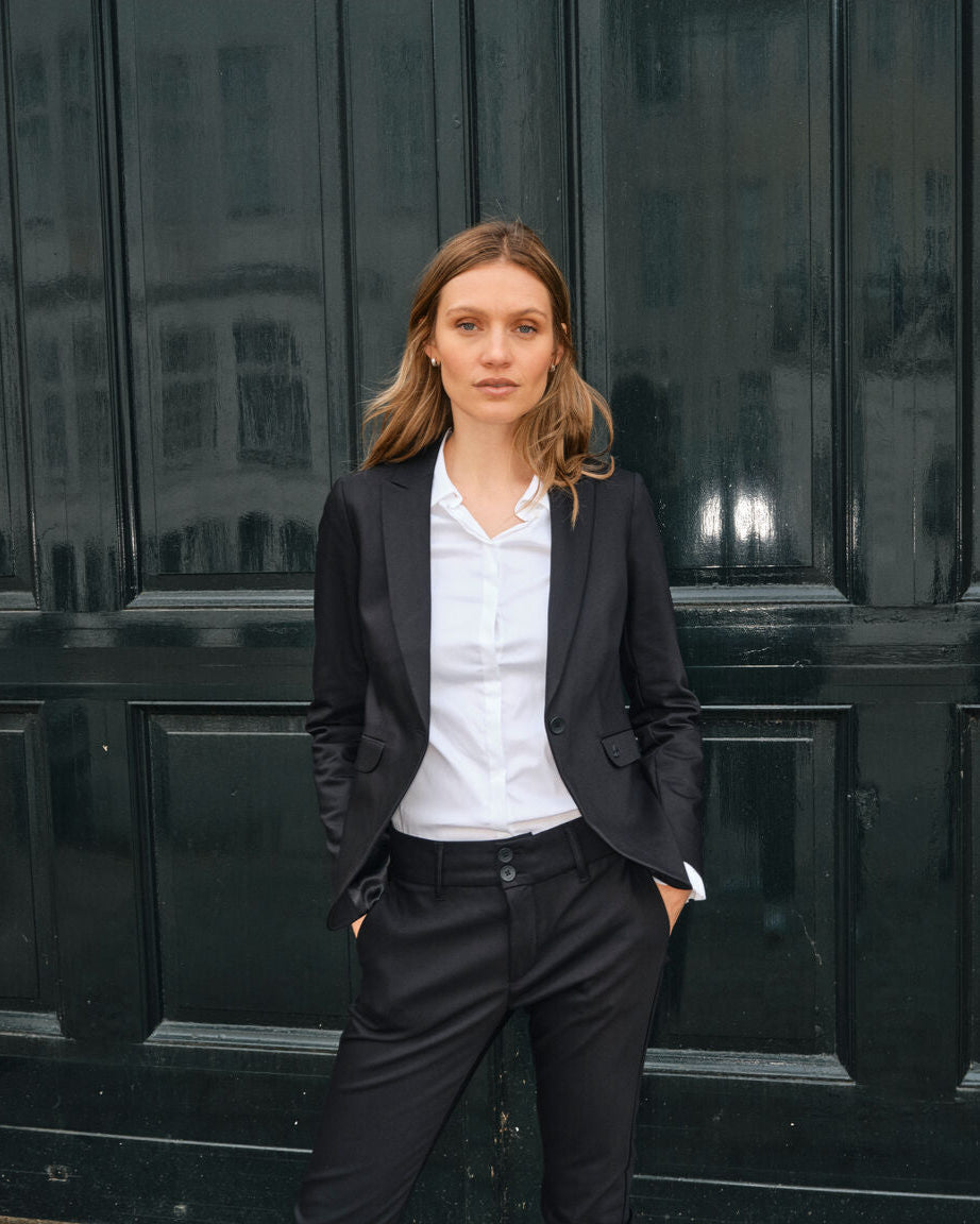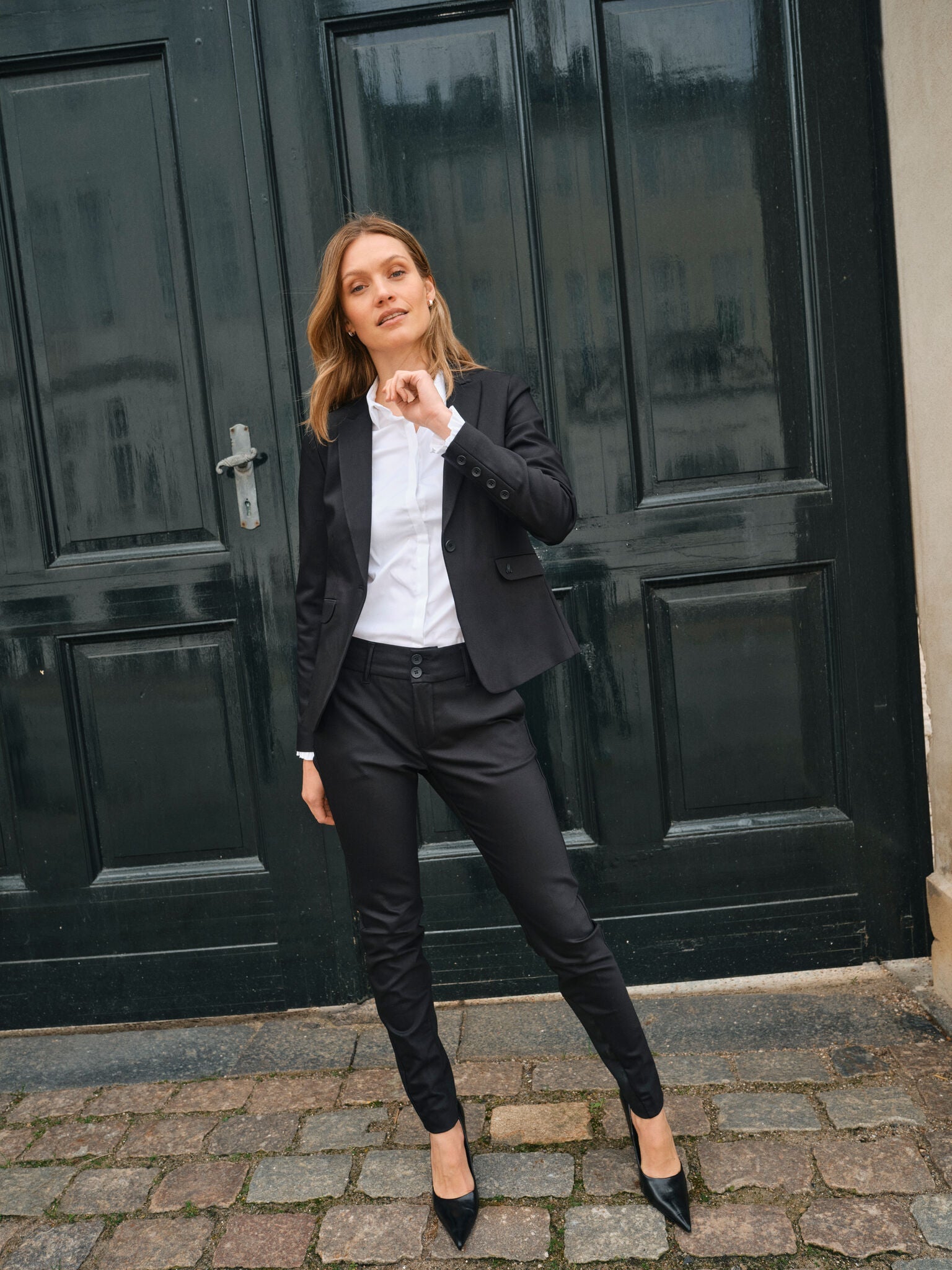 En klassisk, figursydd blazer du alltid kan stole på. Denne ikoniske favoritten fra MOS MOSH er designet med en krøllfri finish som holder deg fresh gjennom lange dager på farten. Blazeren har lett vatterte skuldre, mansjetter med knapper og frontlommer med klaff for et sofistikert uttrykk. Marker midjen med den enkle knappelukkingen. Et allsidig plagg du kan style med alt fra jeans til dressbukser.