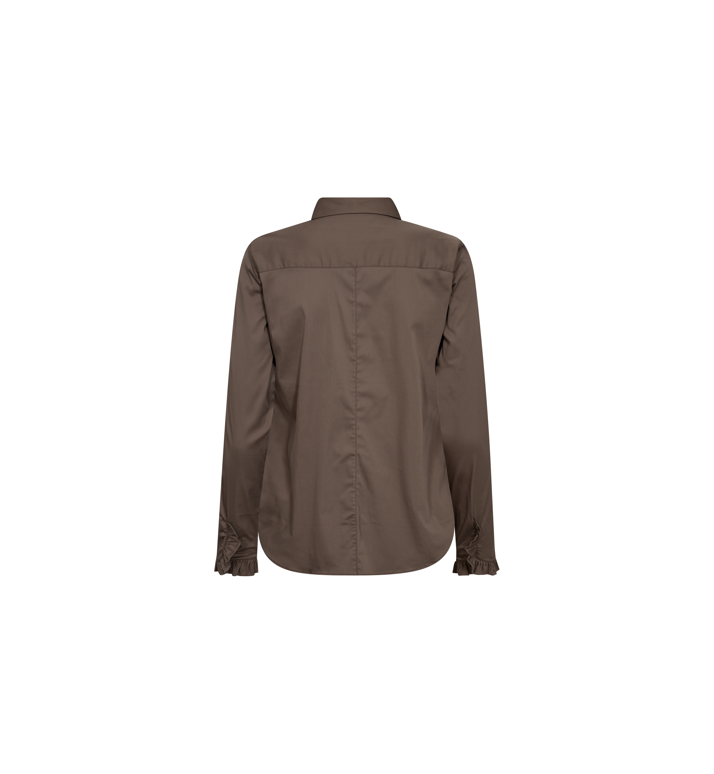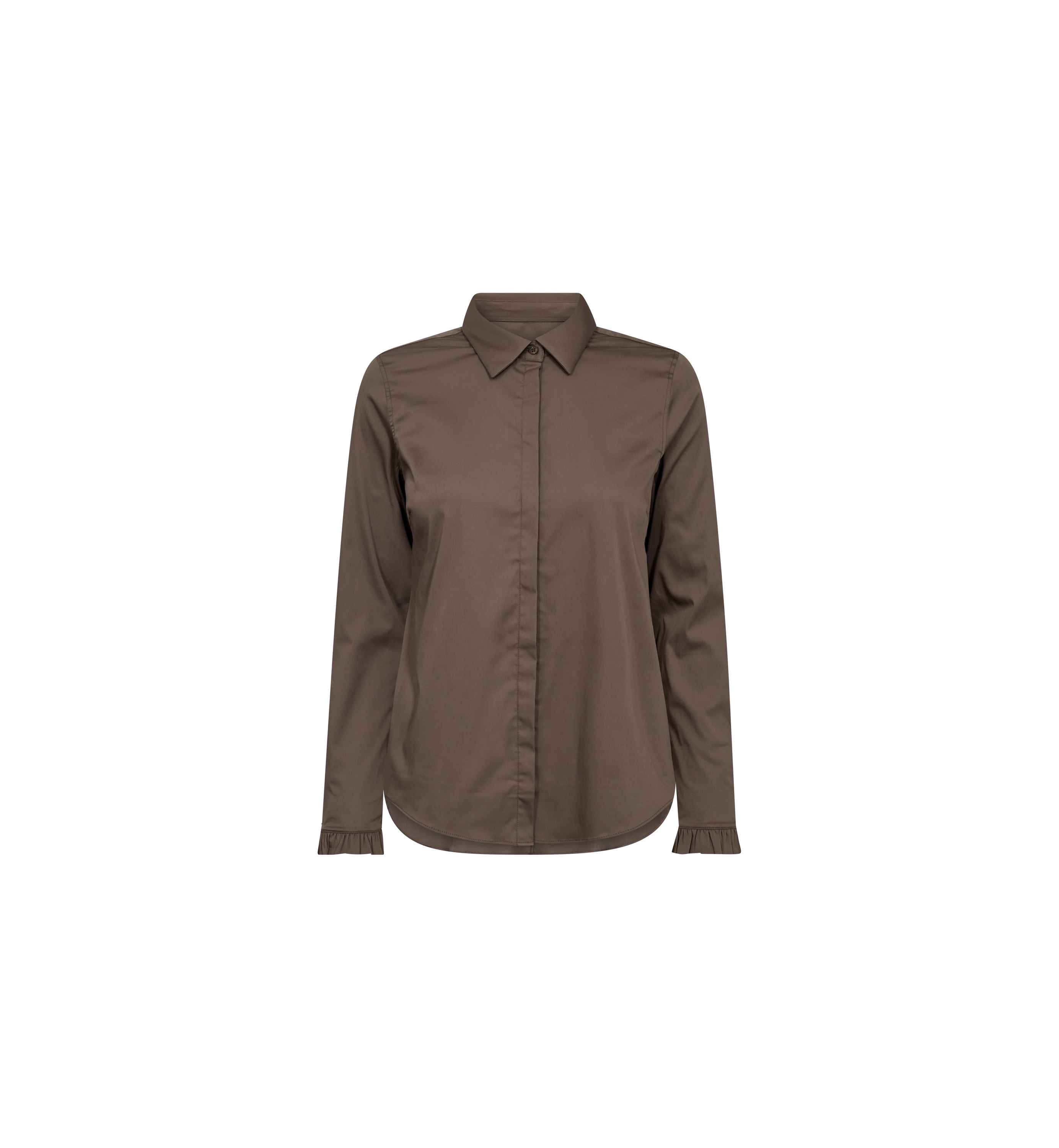 Ønsker du å tilføre antrekket ditt et snev av femininitet? Dette plagget er designet med en elegant, smal silhuett og er laget av ultramykt, elastisk materiale. Den har en klassisk krage, sofistikerte volangmansjetter og en tidløs knappelukking foran. Kombiner den med mer strukturerte plagg, slik at de sjarmerende volangmansjettene diskret titter frem under ermene.