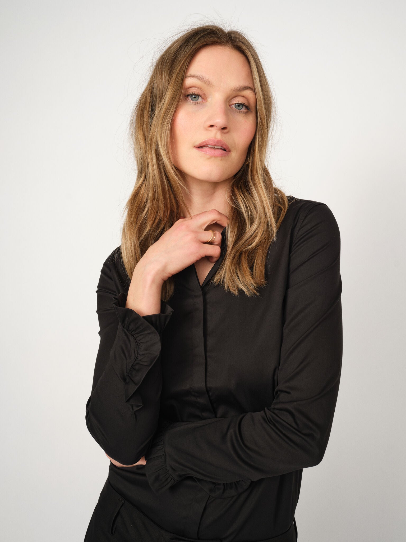 Designet for å sitte perfekt på kroppen din med både komfort og eleganse. MMMattie-skjorten er en garderobeklassiker laget i et mykt, elastisk materiale. Avsluttes med feminine volangmansjetter og klassisk knappelukking. Dette superfeminine plagget vil alltid være en av våre favoritter. Bruk den til alt fra jeans til dressbukser.