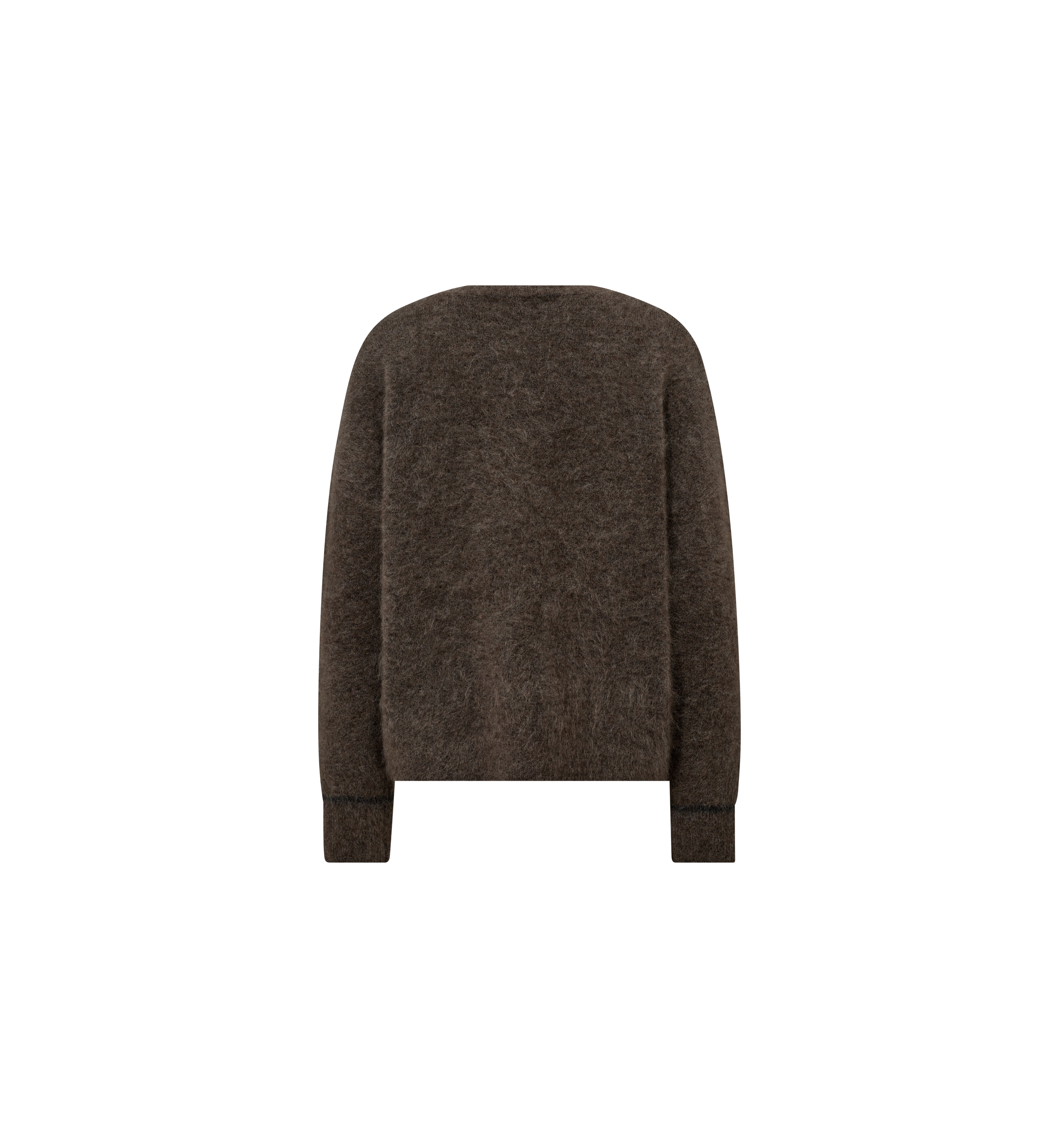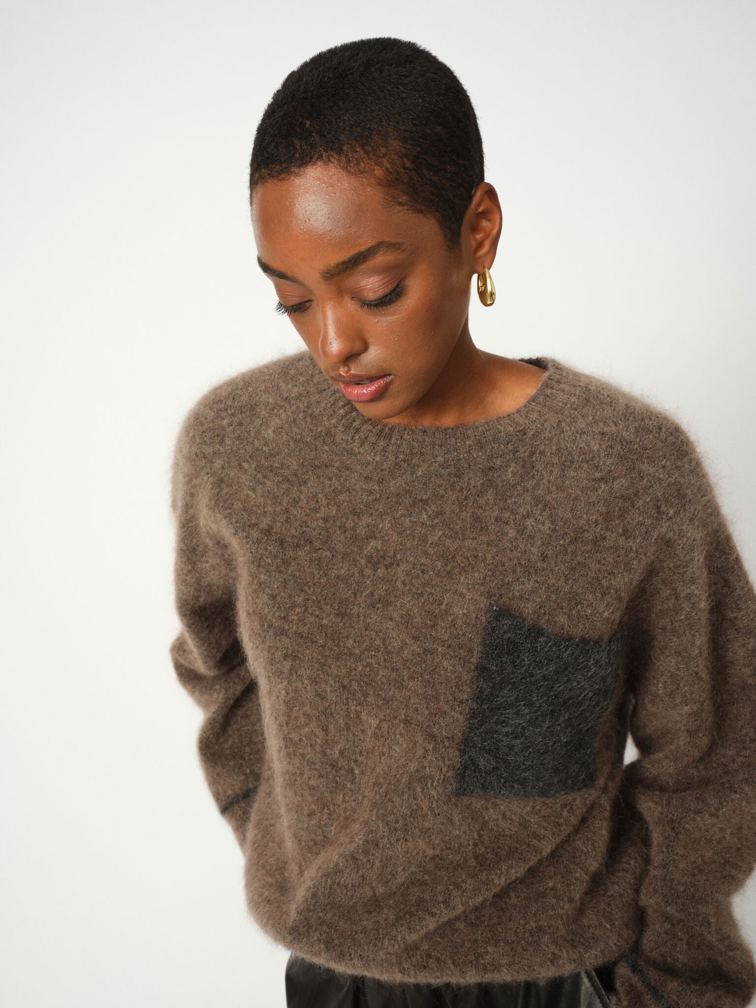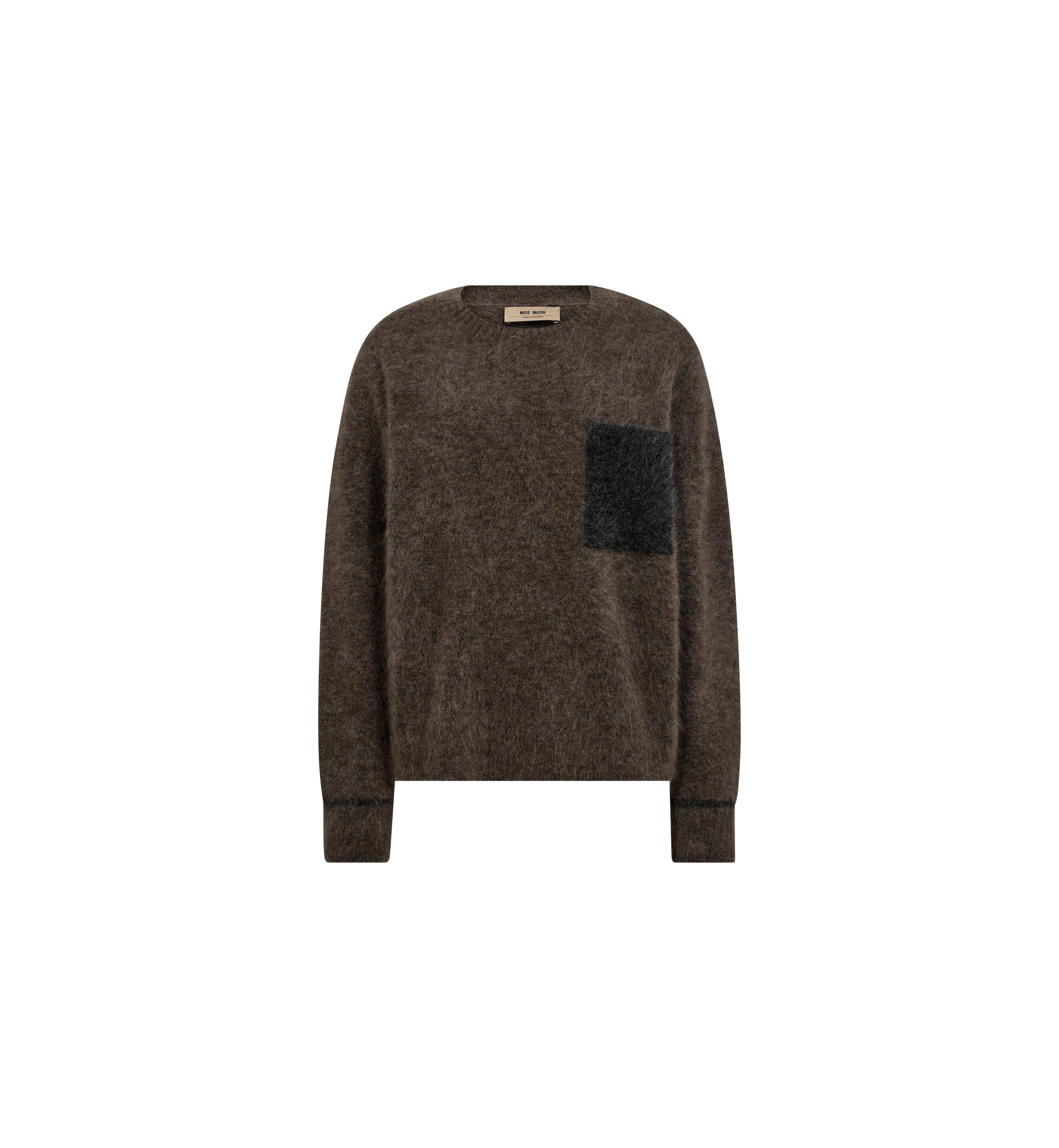 Denne koselige strikkegenseren er laget med en myk, hårete tekstur som gir en avslappet og uanstrengt passform. Den klassiske O-halsen tilfører tidløs sjarm, mens den kontrastfargede brystlommen gir et moderne preg. Style den med denim eller skreddersydde bukser for et stilfullt, men likevel uformelt antrekk.