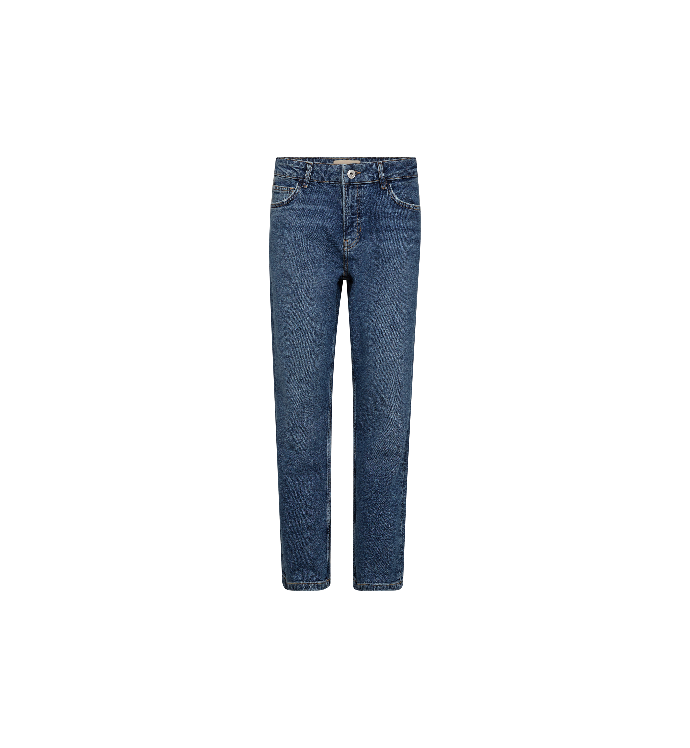 Disse stilige jeansene er laget med en klassisk rett passform og en flatterende midjehøyde, som sikrer komfort hele dagen og en uanstrengt sofistikert stil. De er designet med praktiske lommer og har en elegant lærmerke bak, noe som gir et raffinert, men avslappet uttrykk. Kombiner dem med en crisp bluse eller en uformell t-skjorte for et allsidig og moderne antrekk.