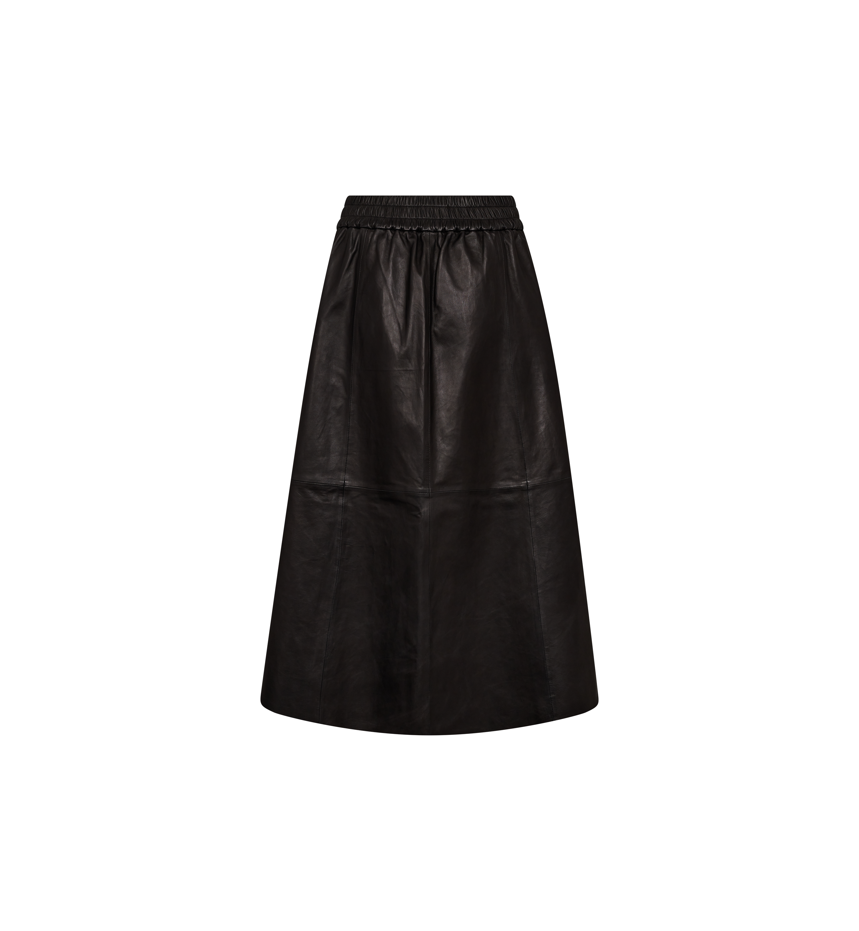 Denne elegante skinnskjørtet er kuttet i en tidløs A-linjeform med delikate folder, som gir både struktur og bevegelse. Den elastiske midjebåndet gir en komfortabel og flatterende passform, noe som gjør det til et allsidig plagg for enhver anledning. Kombiner det med den matchende skinnvesten for et sofistikert og moderne antrekk med en dristig vri.