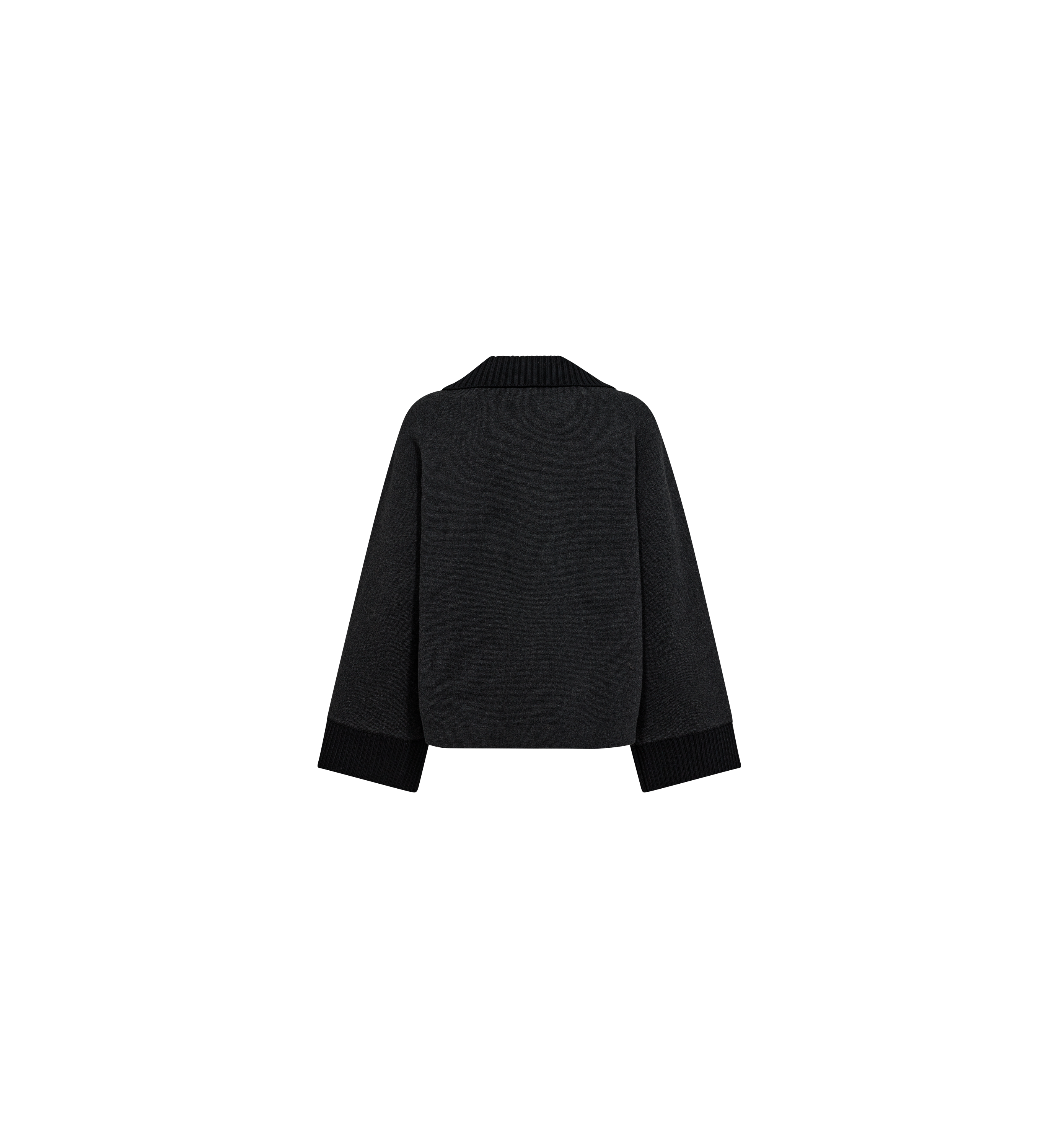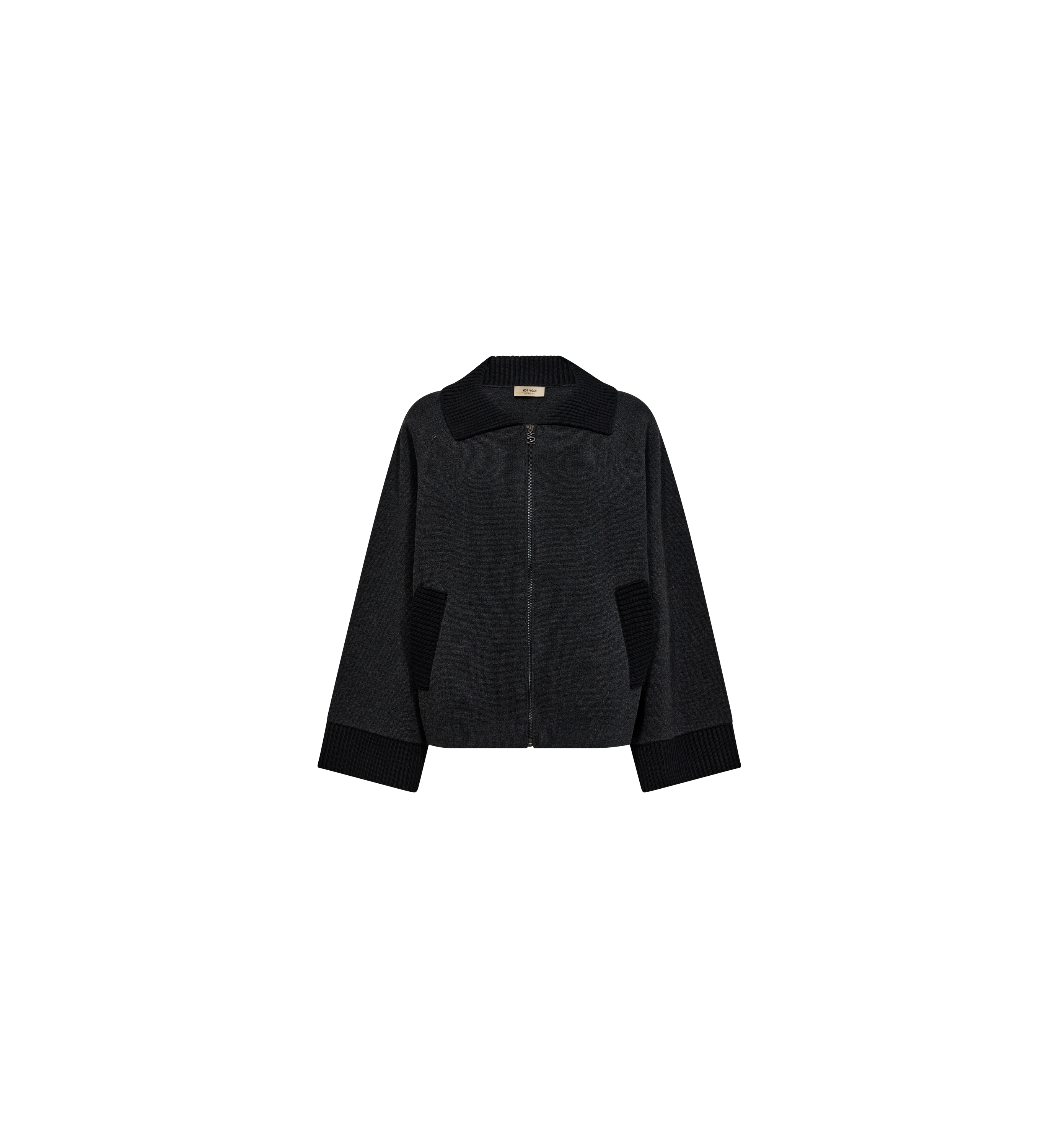 Denne stilige strikkede cardiganen er laget i en oversized silhuett, og gir et avslappet og uanstrengt lag med klær. Den er designet med en klassisk krage og en trendy synlig glidelås, som kombinerer uformell eleganse med moderne stil. De kontrastfargede ribbestrikkede detaljene ved halsen, mansjettene og lommene gir et iøynefallende preg, som hever dens moderne appell.