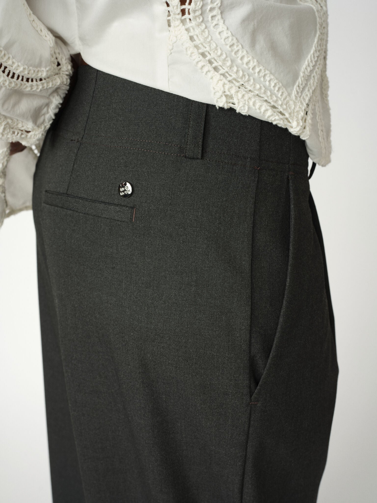 Disse klassiske skreddersydde buksene har en rett passform med en flatterende midjehøyde, som kombinerer eleganse med komfort hele dagen. Den stilige krok-lukningen gir et polert utseende, mens delikate folder fremhever den raffinerte silhuetten. Kombiner dem med en crisp bluse eller en koselig genser for et allsidig og uanstrengt chic utseende.