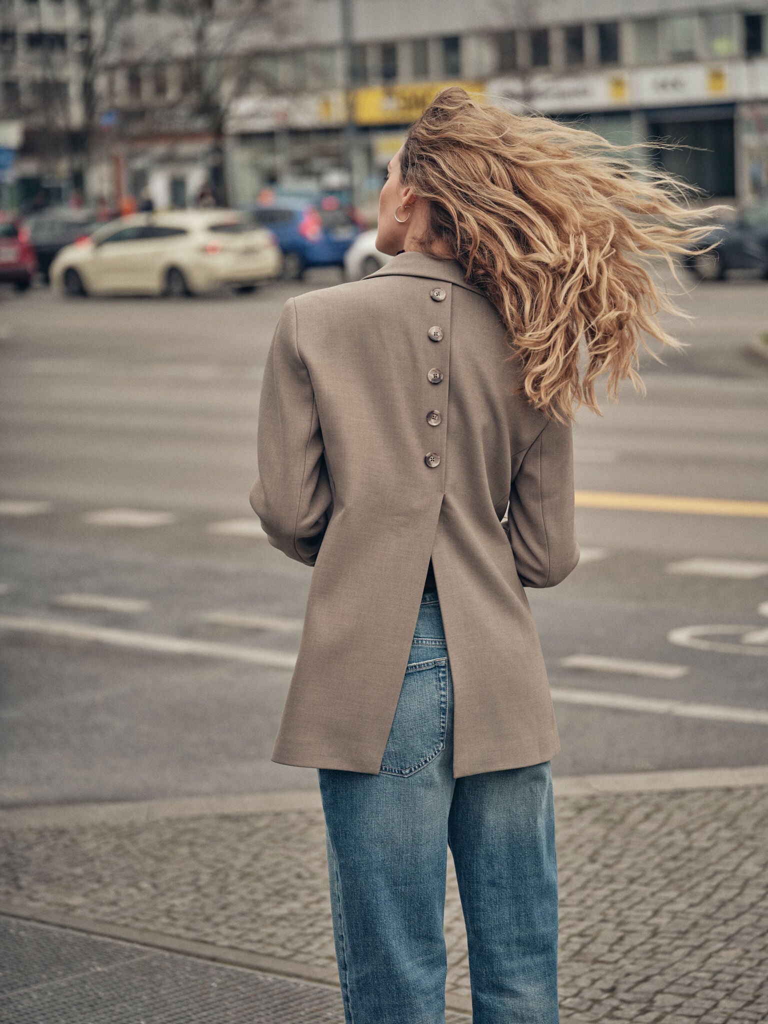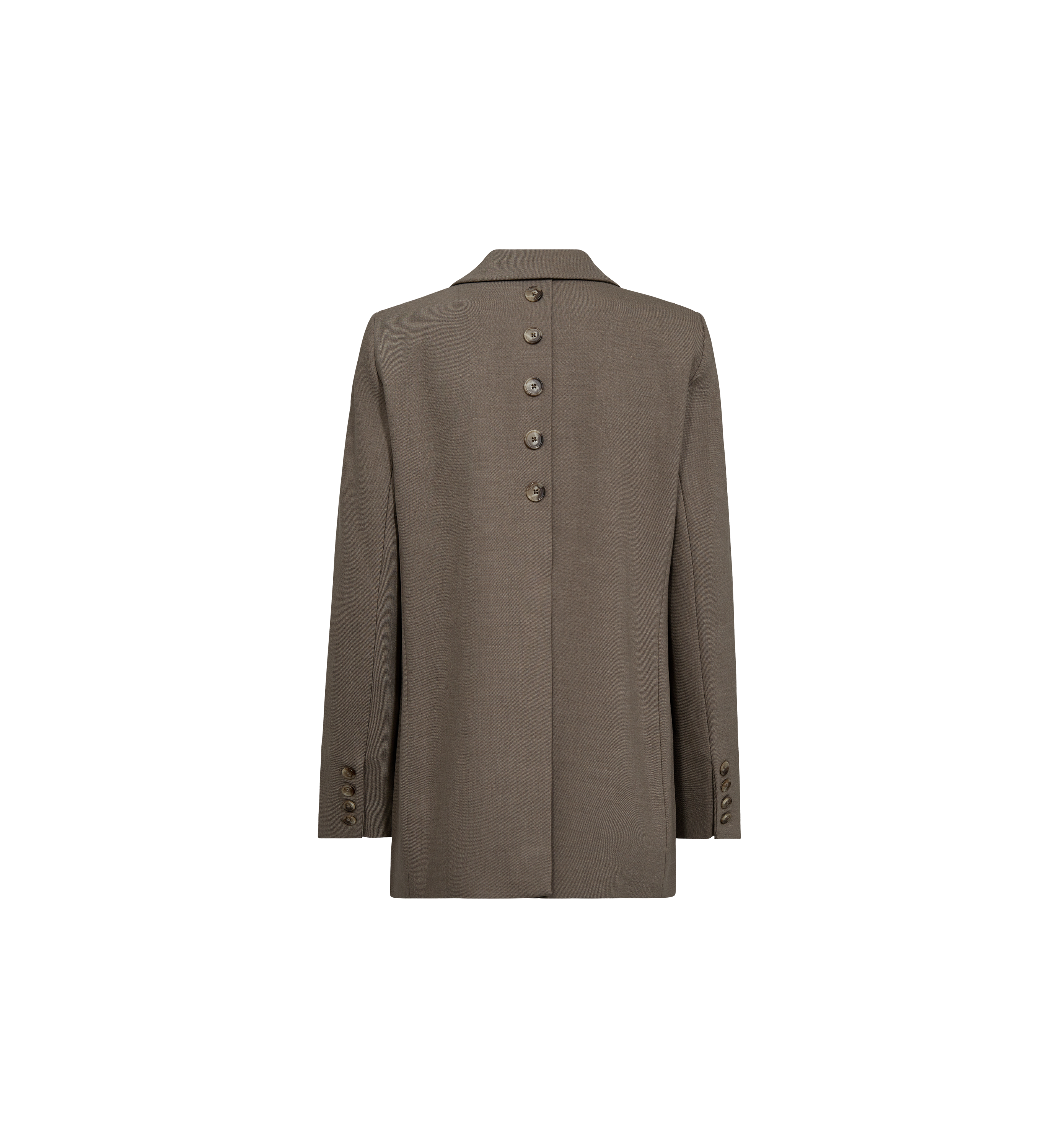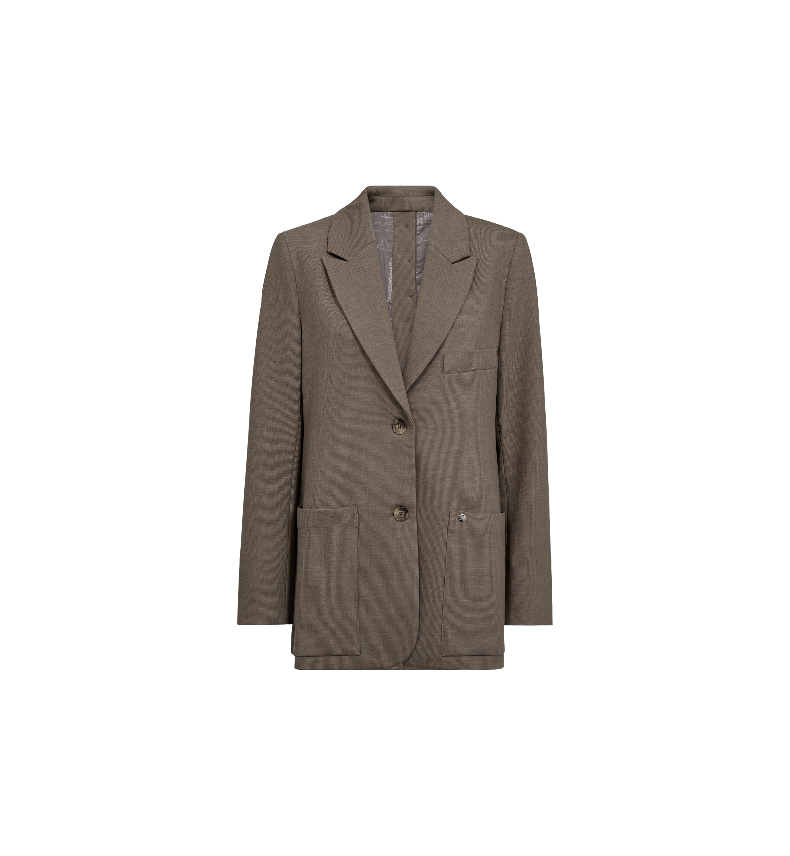 Denne moderne blazeren er laget i en oversized, lang silhuett, med en stilren en-knapp design som gir et samtidsrettet, men klassisk preg. Elegante knappedetaljer bak gir et raffinert uttrykk, mens de knappefeste mansjettene og de praktiske lommene hever den skreddersydde estetikken. Kombiner den med matchende bukser for et sofistikert og uanstrengt polert utseende.