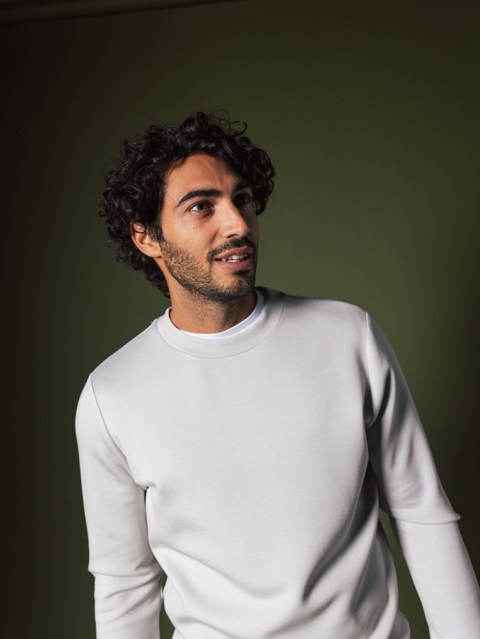 Ikke bare en vanlig hettegenser. Designet med en avslappet passform og rund hals, og med en supermyk scuba-lignende følelse, som kanskje er den mykeste du noen gang vil få tak i. Oppgrader fritidsviben med en blazer og denim, eller med cargo-bukser og overskjorte for å fullføre antrekket.