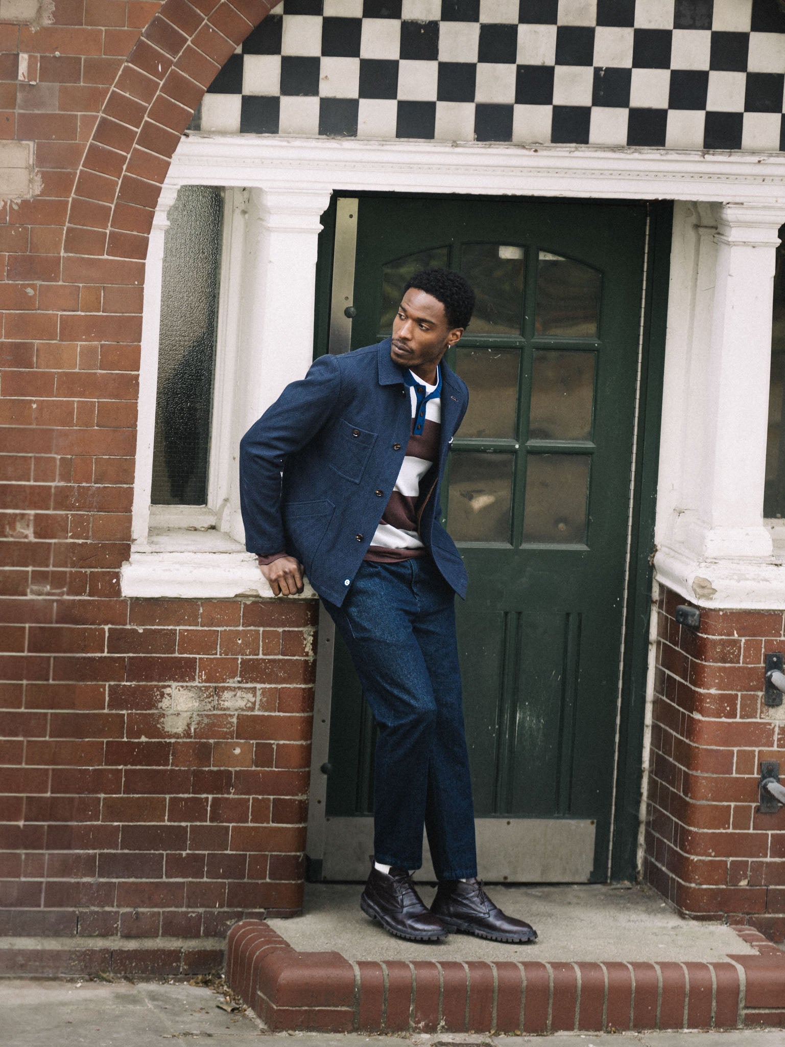 Japansk Jacquard-denim gir denne arbeidsinspirerte jakken et teksturert løft. Med en vanlig passform og detaljer med selvrandsøm i lommene, er den laget med fokus på autentisitet og håndverk. En iøynefallende jakke som omdefinerer robust eleganse.