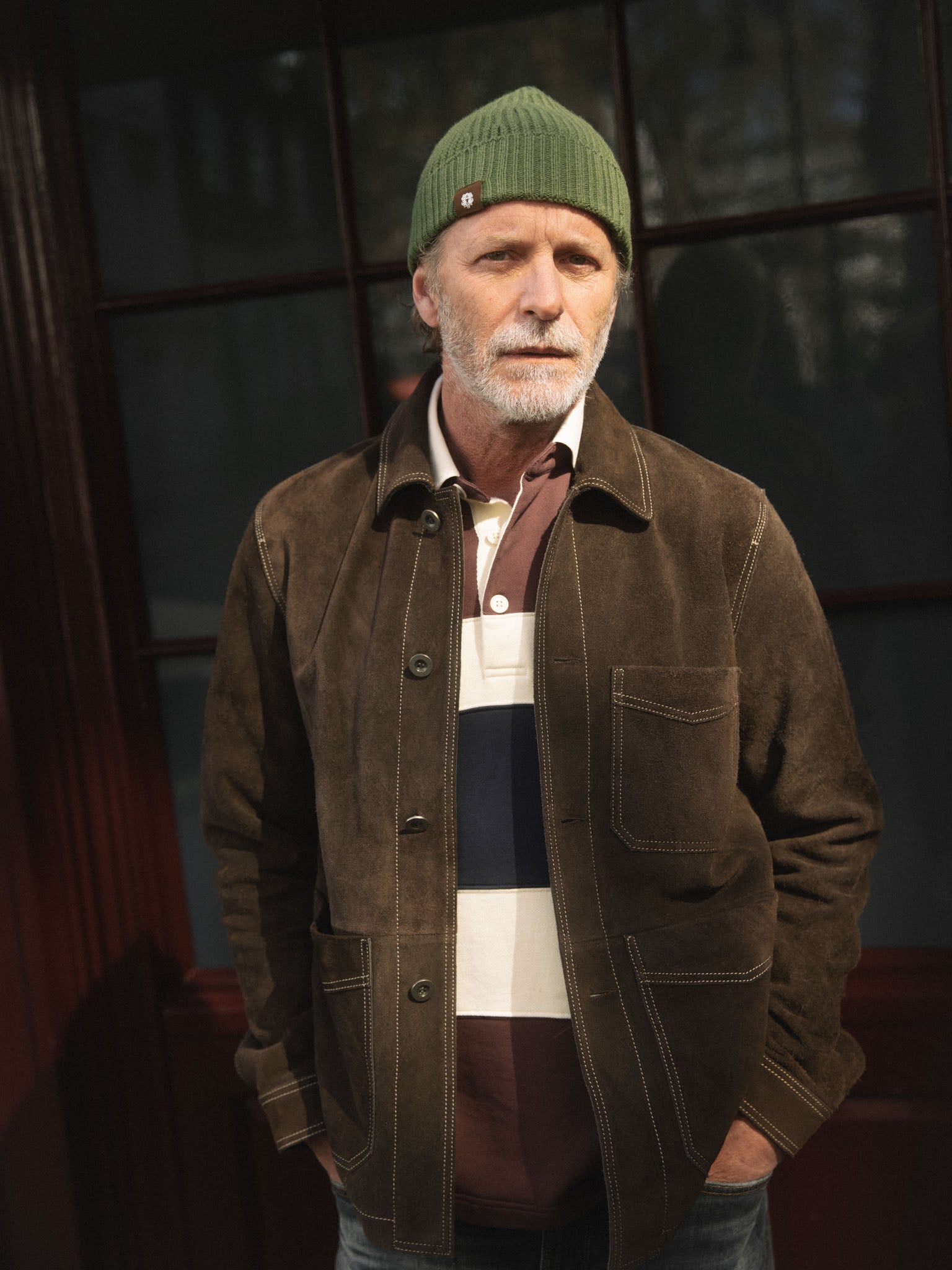 Denne semskede jakken gir en moderne vri på tradisjonelt arbeidstøy, laget av kraftig ku semsket skinn for struktur og dybde. Den normale passformen, de store lommene, kontrastsømmen og knappelukking gir et dristig og robust preg. En iøynefallende jakke som balanserer holdbarhet med en hevet stil.