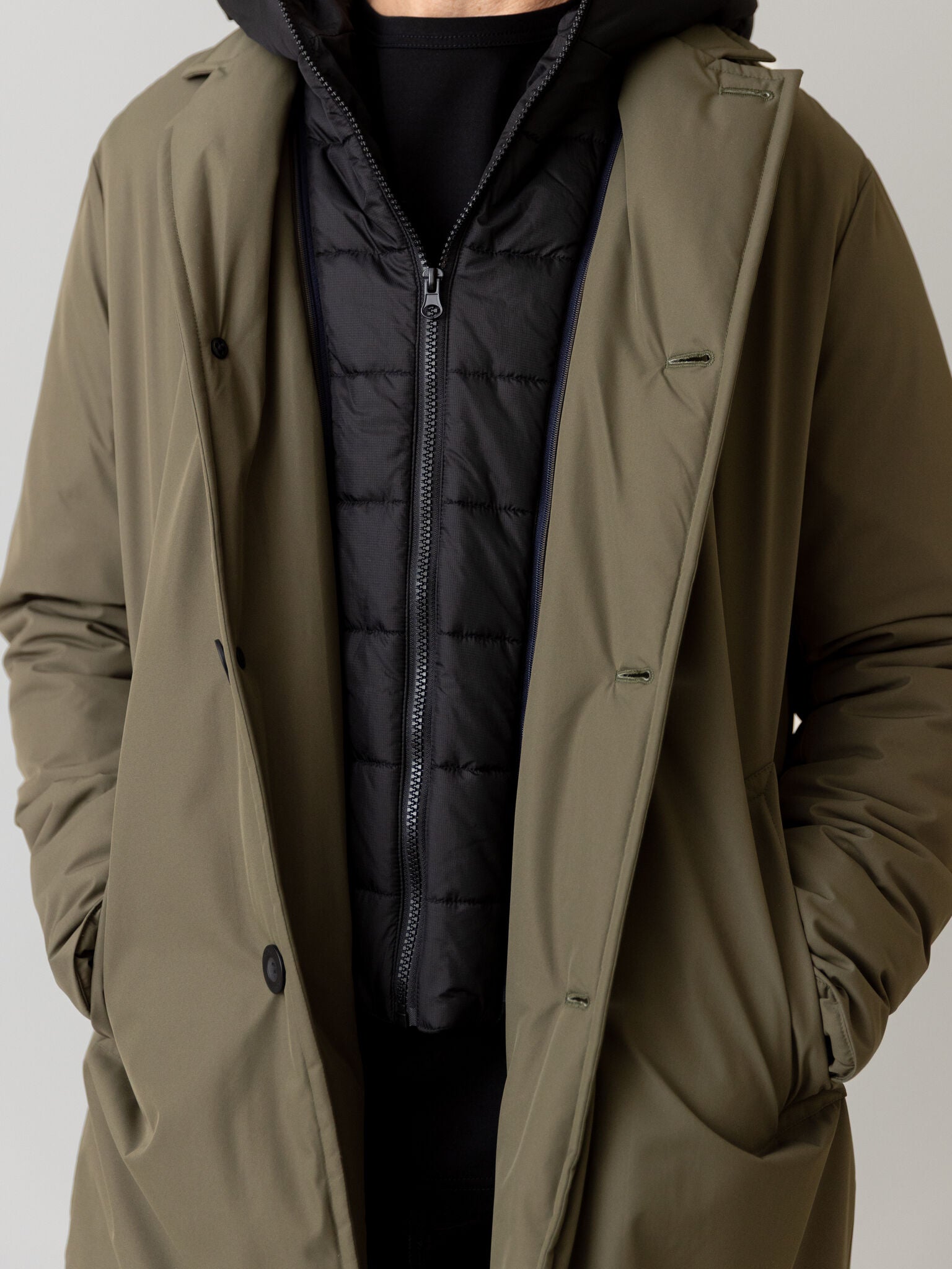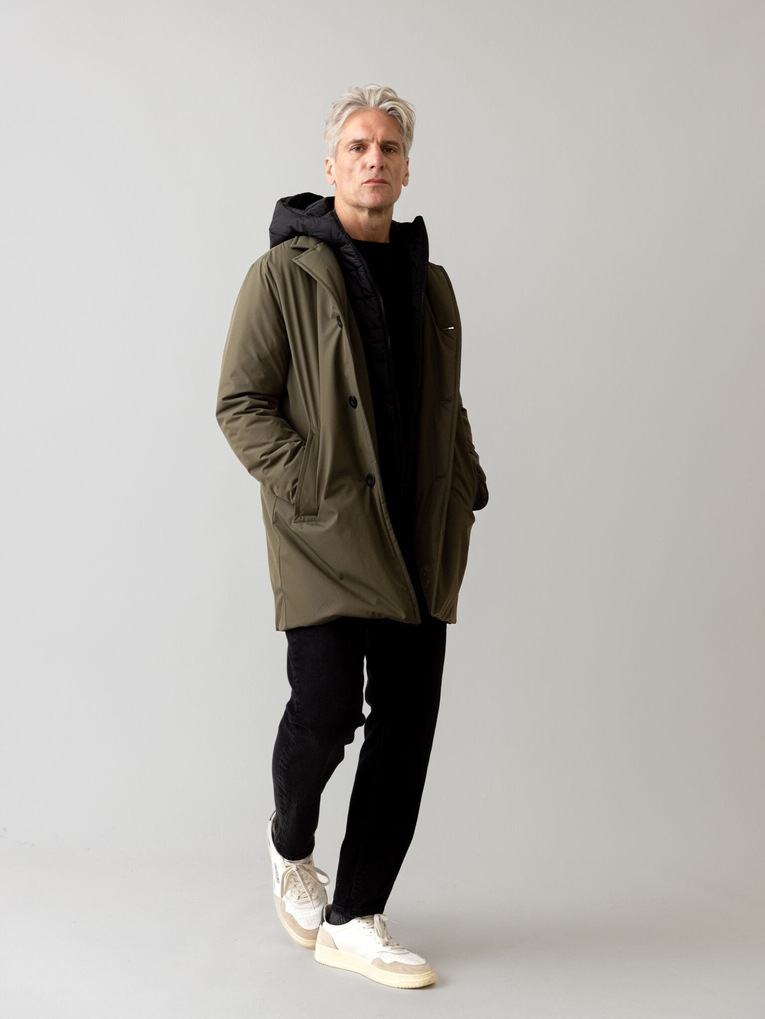 En moderne ytterjakke som er et must-have med en sporty vri, laget i en vanlig passform og med en litt lengre silhuett for ekstra dekning. Den er designet med funksjonelle detaljer som stormmansjetter, sidelommer og en avtagbar hette i kontrastfarge, noe som gjør den perfekt for skiftende værforhold. Style den enkelt over en overskjorte og hettegenser for et stilig, lag-på-lag utseende sammen med chinos.