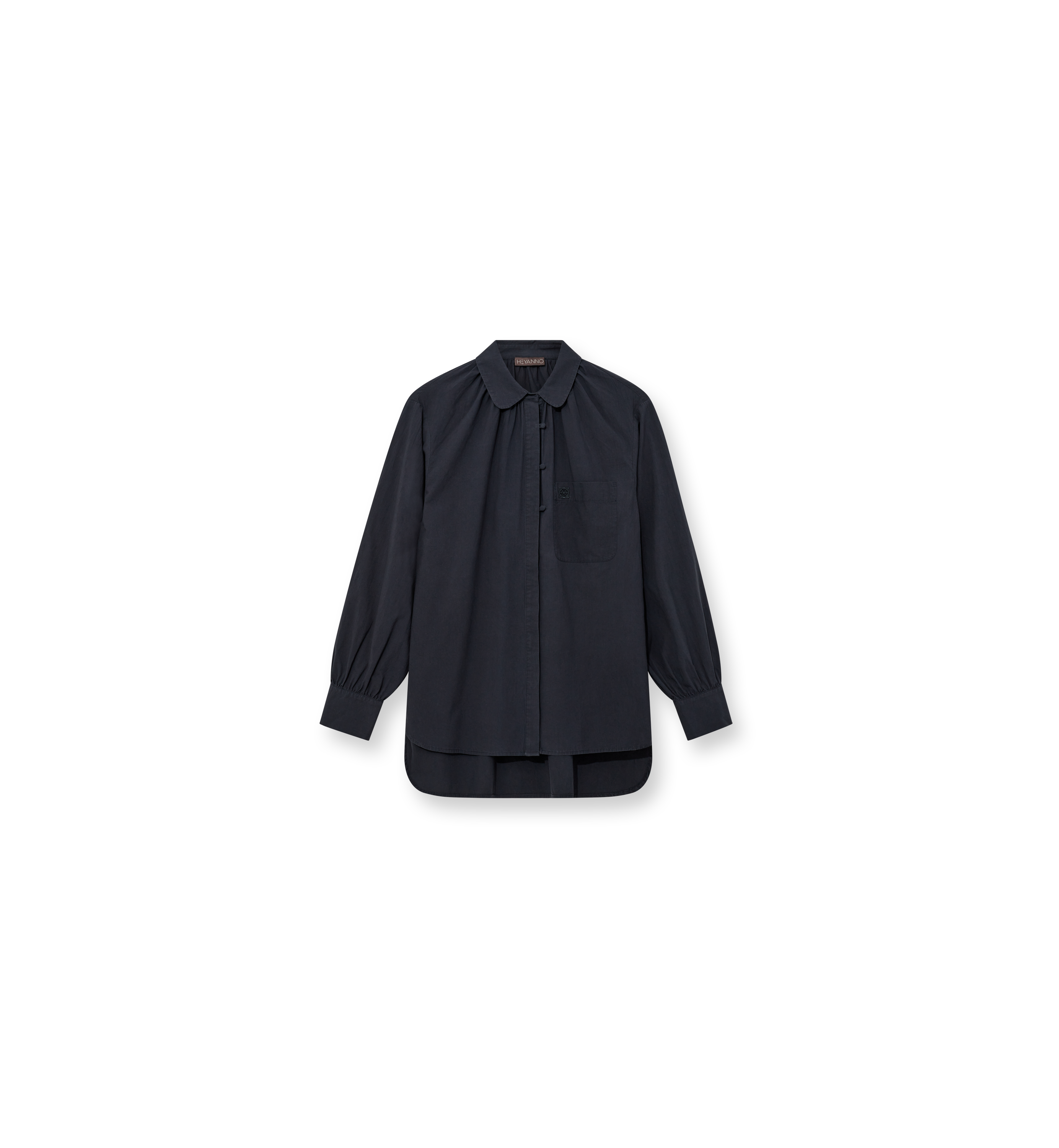 Supermyk skjorte med en avslappet fasong og en vaskefinish som gir en behagelig følelse. Feminine folder og en rund krage tilfører mykhet til den strukturerte stilen. Buede sidesplitter og knappede mansjetter fullfører det elegante utseendet.