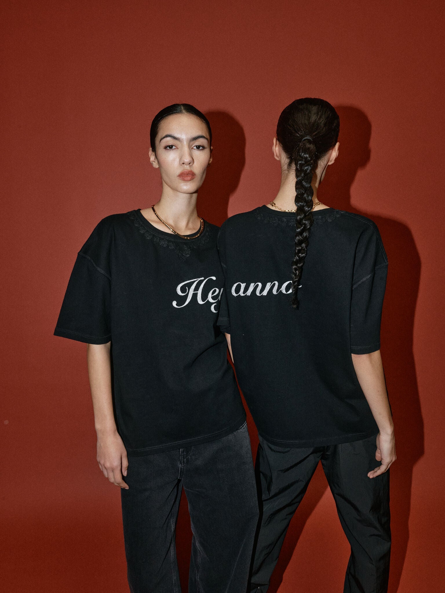 En t-skjorte som leker med kontraster—feminint møter maskulint på akkurat riktig måte. Perfekt å ha under en blazer eller cardigan. Bare legg til smykker.