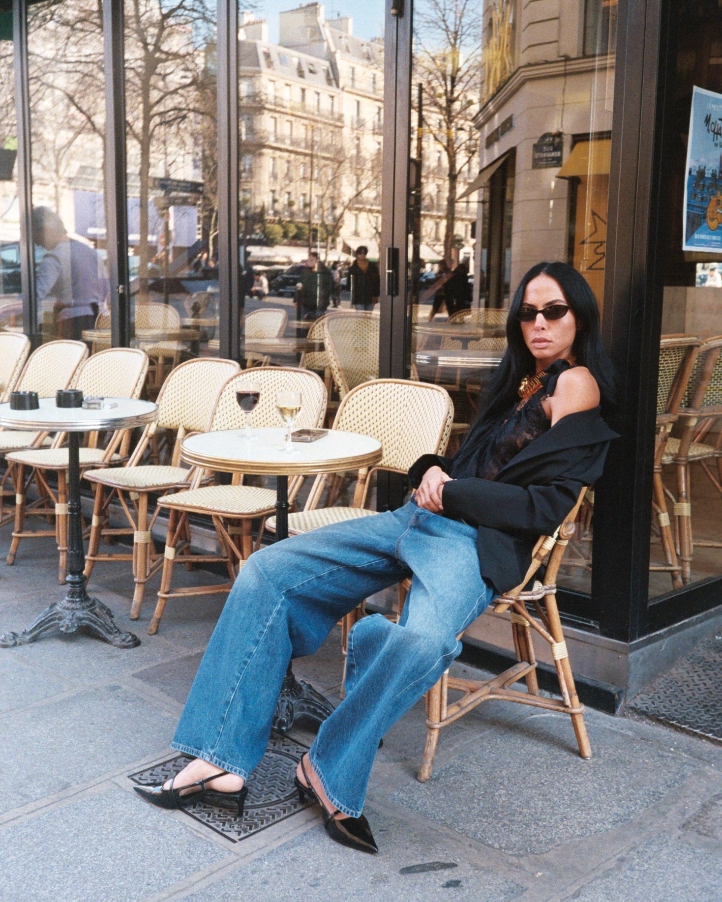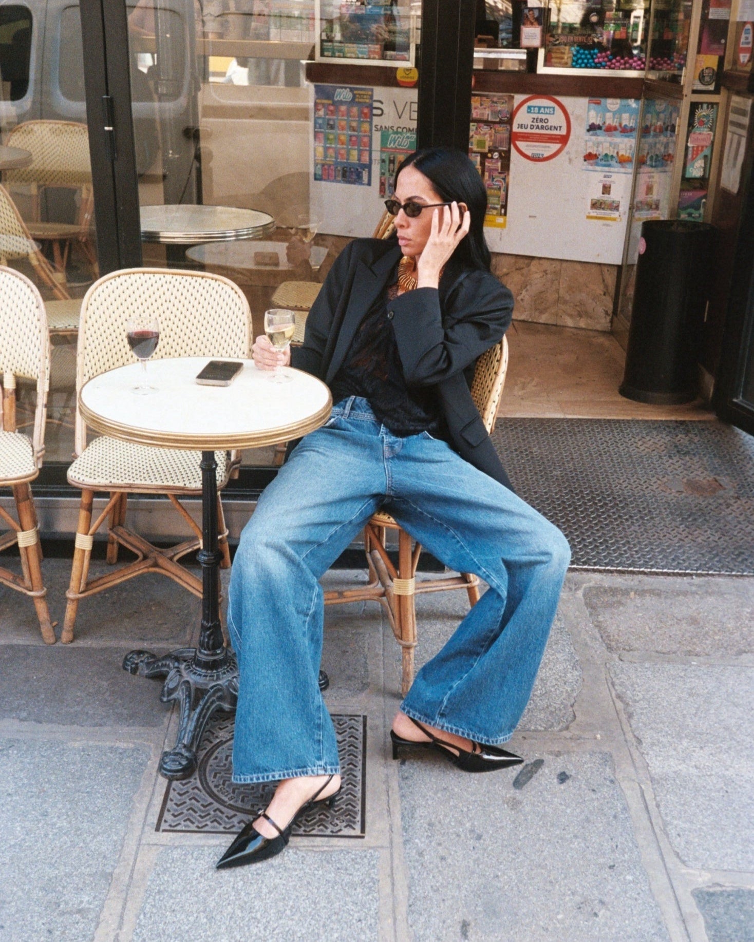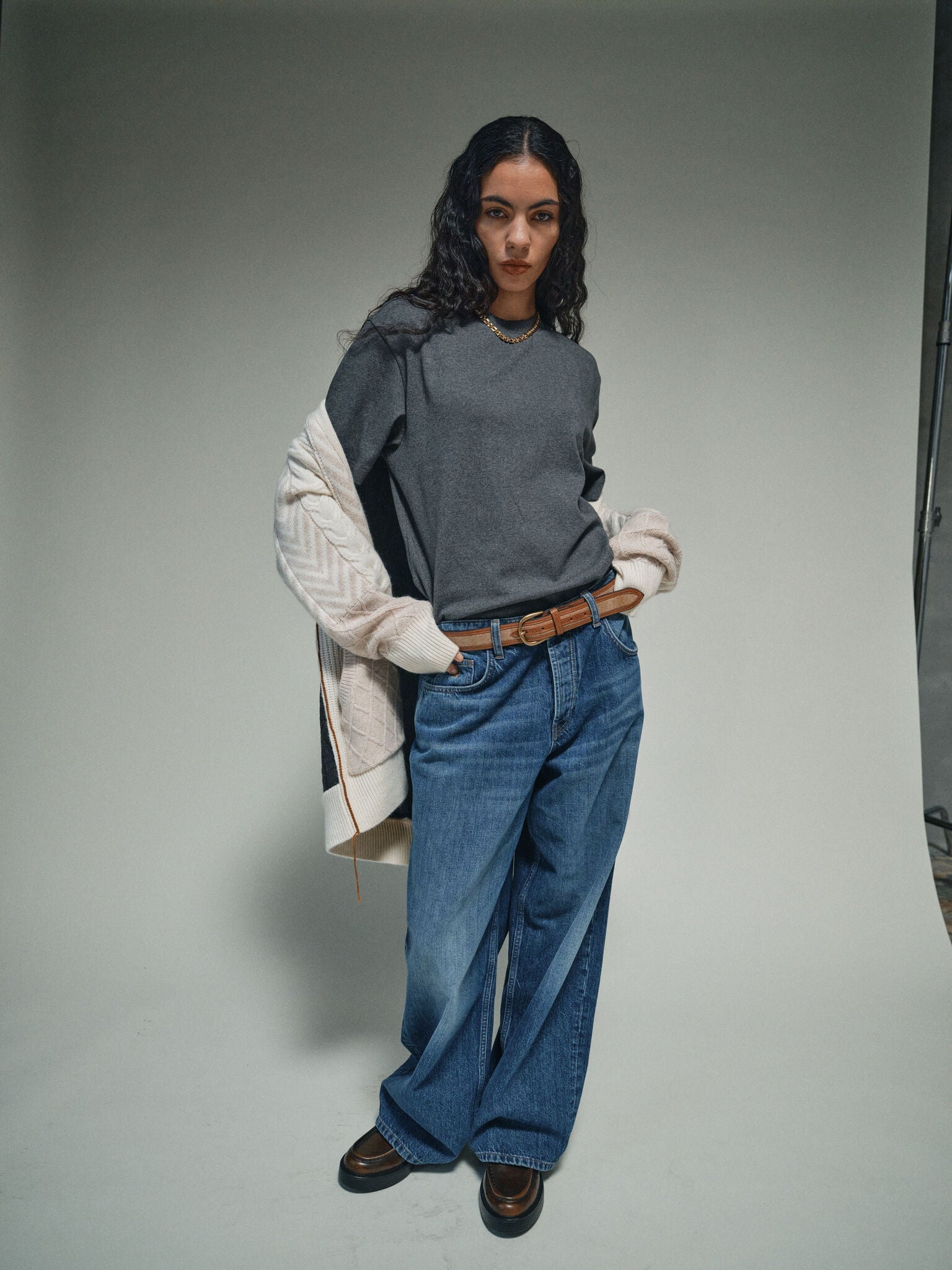 Vide jeans i myk, drapert denim med lav midje som henger stilig på hoften. Den vridde sidesømmen gir et moderne preg til den avslappede silhuetten.