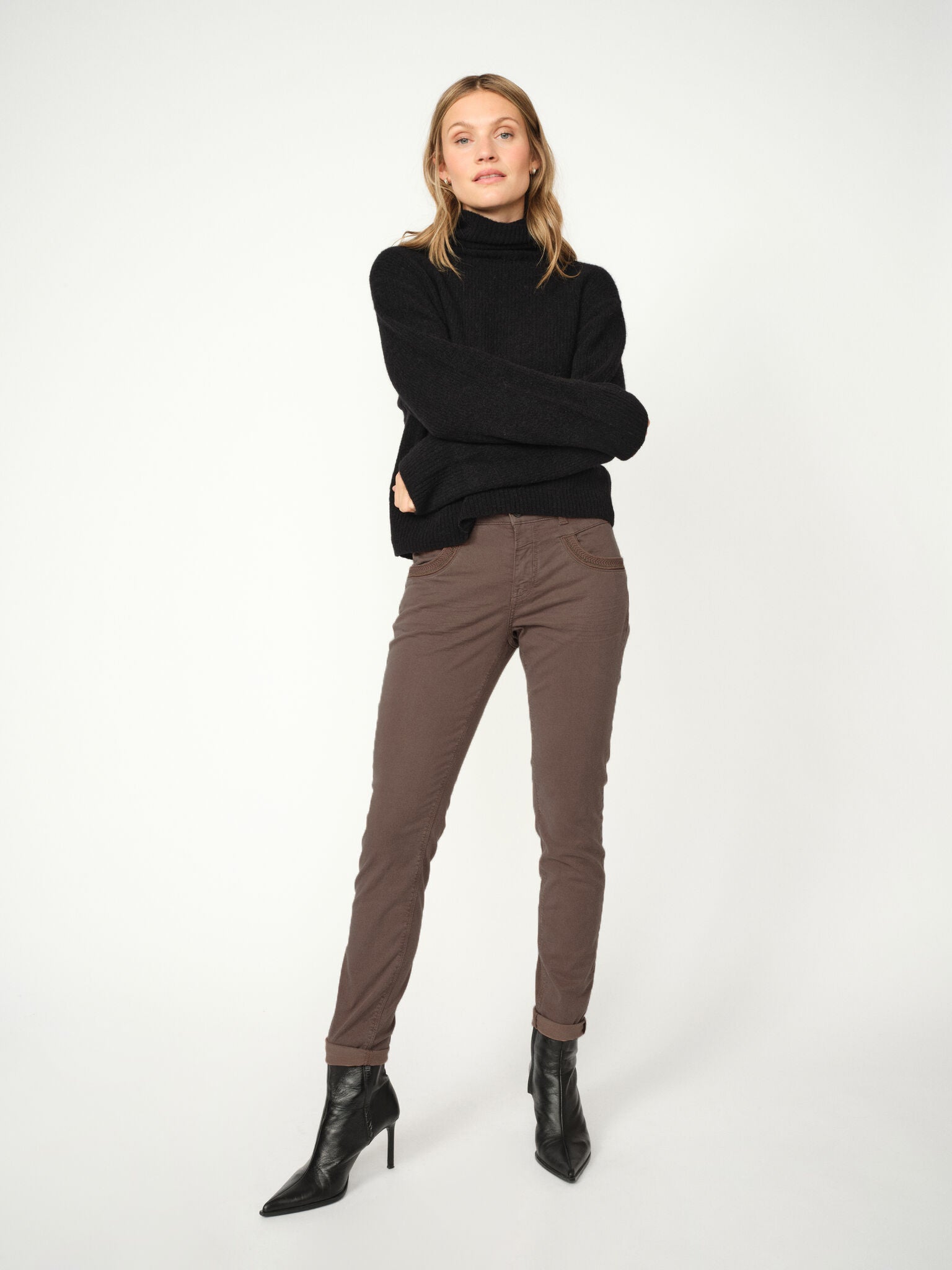 Disse buksene er designet med avsmalnende ben og høy eller middels livhøyde, og har diskrete detaljer ved lommene. For en ekstra kul look kan du rulle opp buksekantene. Kombiner dem med en statement t-skjorte og en elegant blazer for et stilig antrekk.